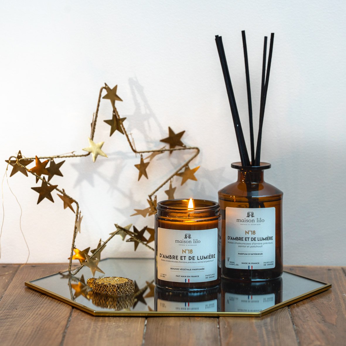 L’ambre est l’une des matières les plus rares et recherchées en parfumerie car son odeur chaude est enivrante, elle donne son caractère à cette bougie merveilleuse qui évoque les voyages lointains et les caravanes chargées de trésors précieux. Nos bougies sont coulées artisanalement en France, à base de cire de soja eco-responsable (sans OGM ni pesticides), de mèche coton  et de senteurs naturelles développées avec nos parfumeurs partenaires à Grasse. La qualité de la cire utilisée permet une combustion lente et une diffusion optimale de la senteur Nos pots, fabriqués en Europe, sont en verre ambré recyclable à l’infini, nos étiquettes imprimées sur papier recyclé localement.