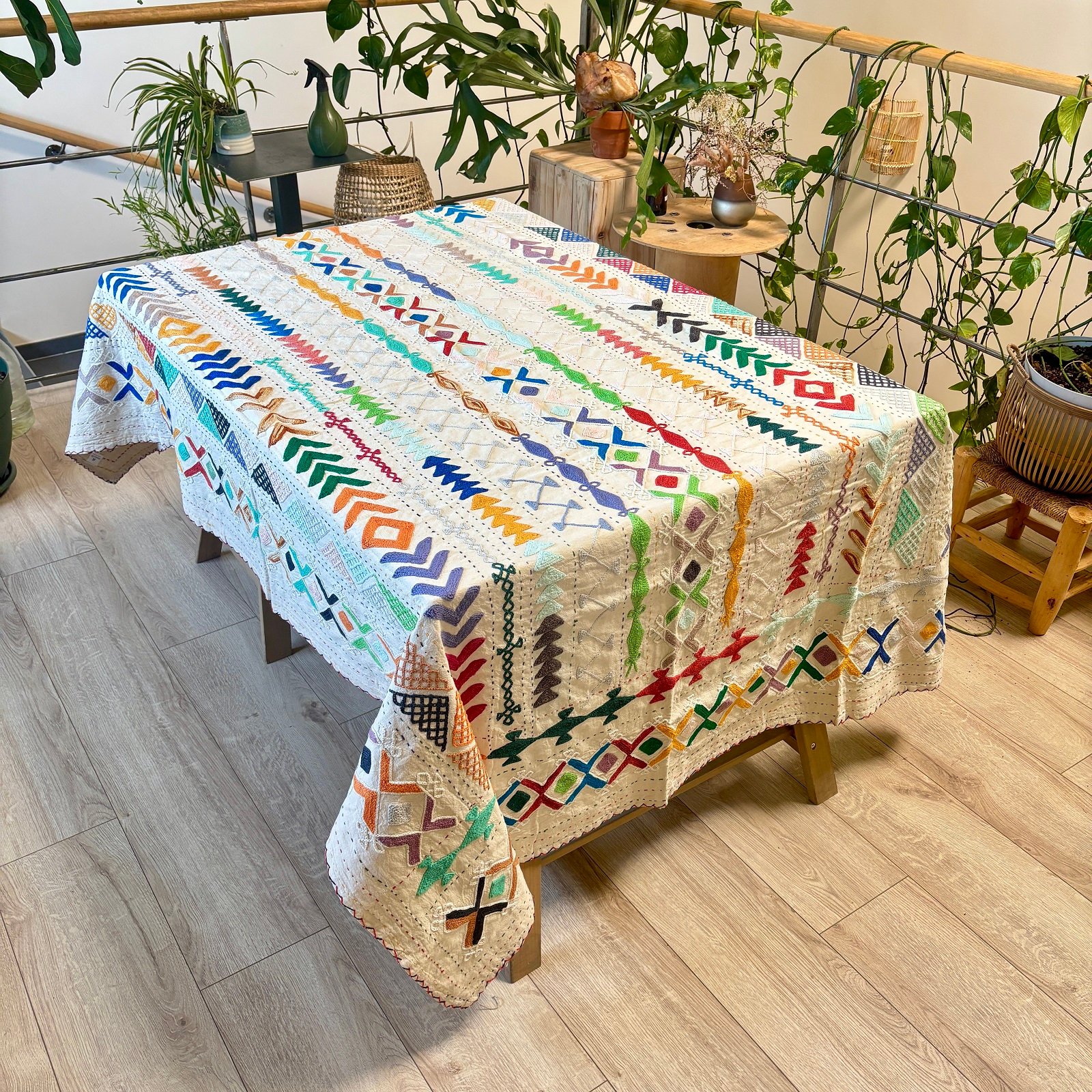 Une pièce unique qui pourra être utilisée en tenture murale, se transformer en nappe pour une table d’exception ou encore devenir en tenture murale ou une superbe tête de lit.