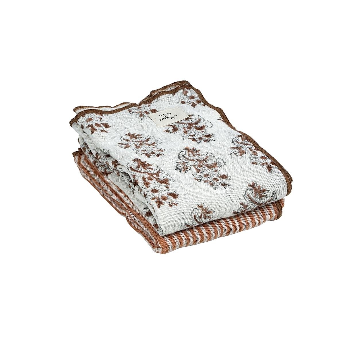 Lot de 2 torchons Hoya en gaze de coton imprimée blockprint