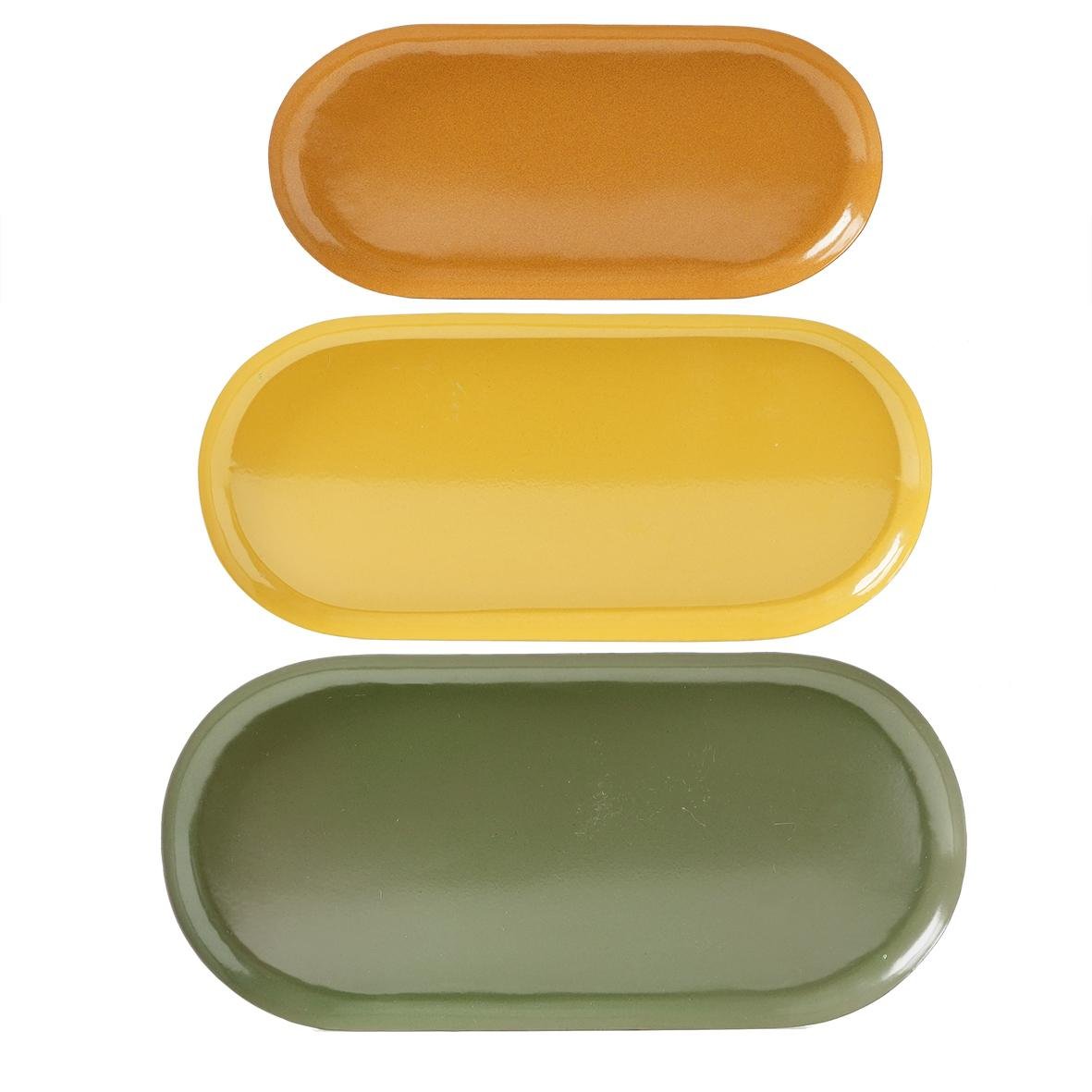 Lot de 3 plateaux ovales laiton-terracotta/havane/olive