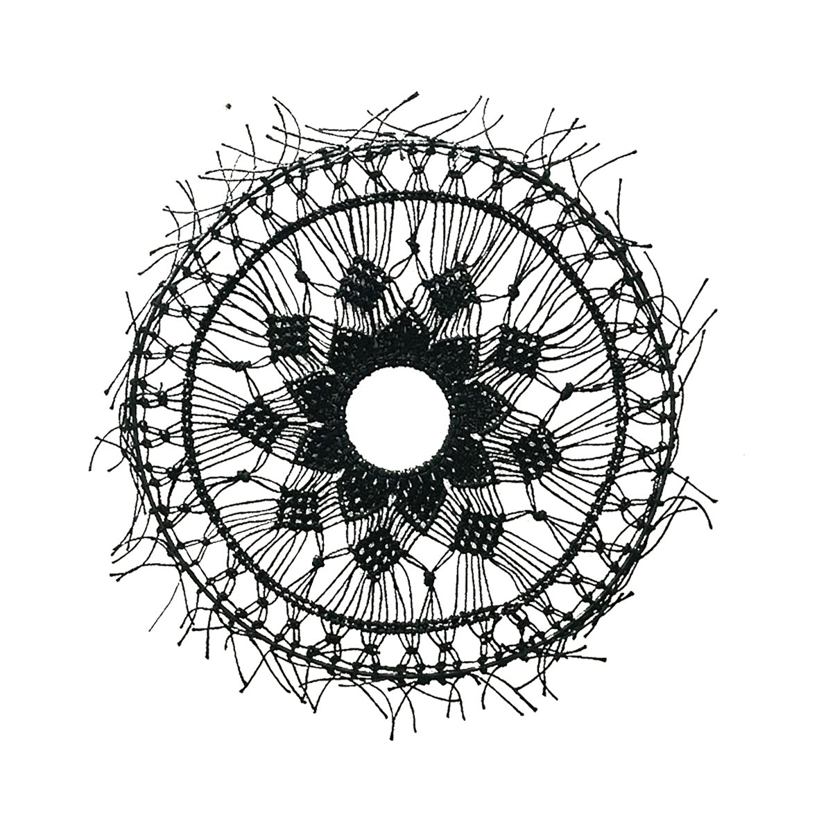 Mandala noir en macramé de jute tressé main