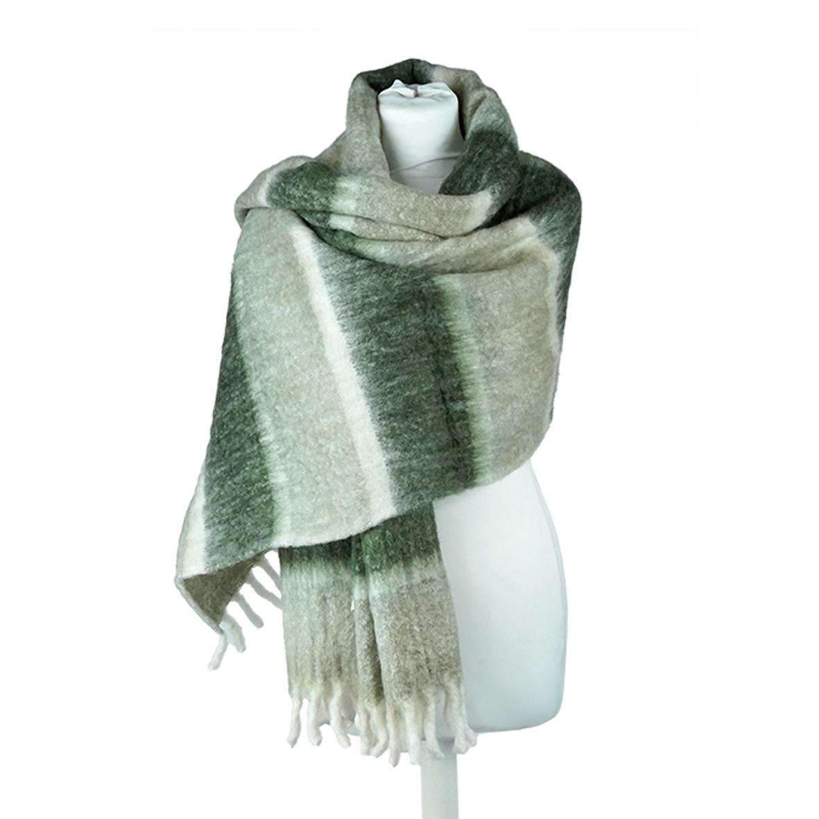 Grande écharpe Baltik lichen/vert forêt, laine mélangée