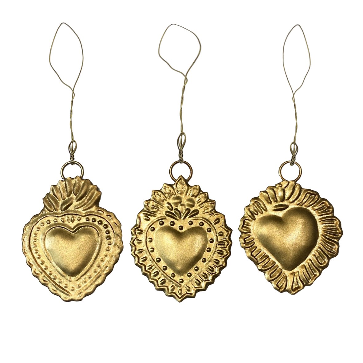Lot de 3 exvotos métal coloris laiton à suspendre