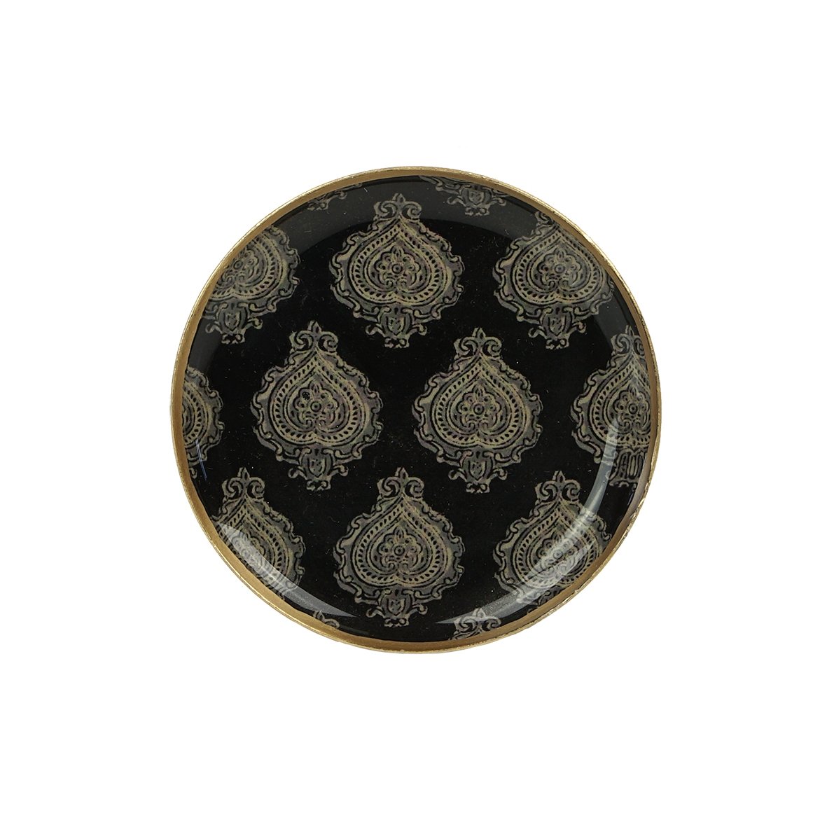 Mini plateau rond métal émaillé Arles noir, bordure dorée