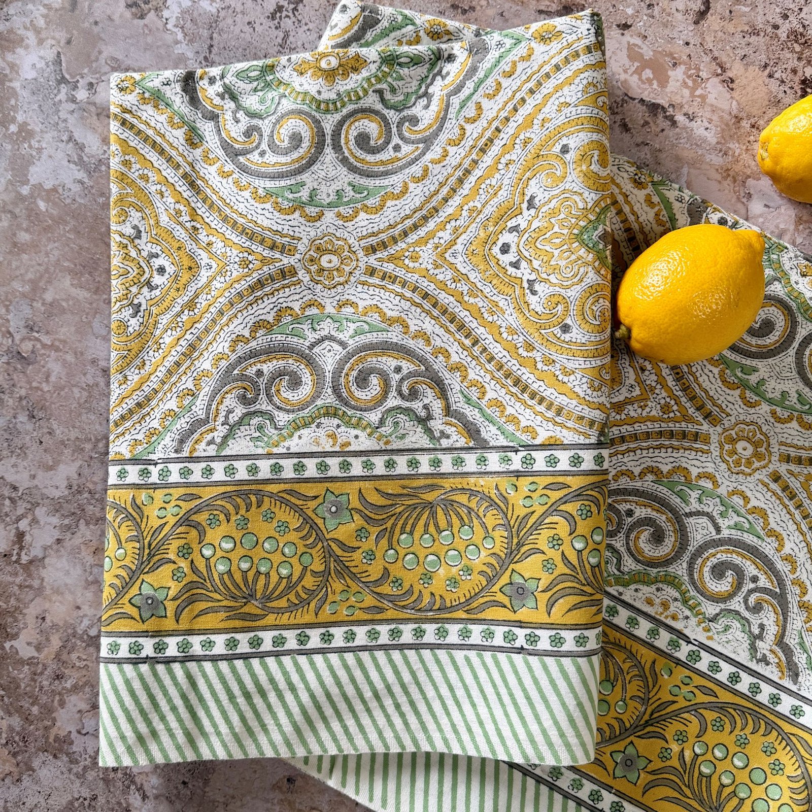 Nappe Madame de Sévigné mimosa, coton imprimé blockprint