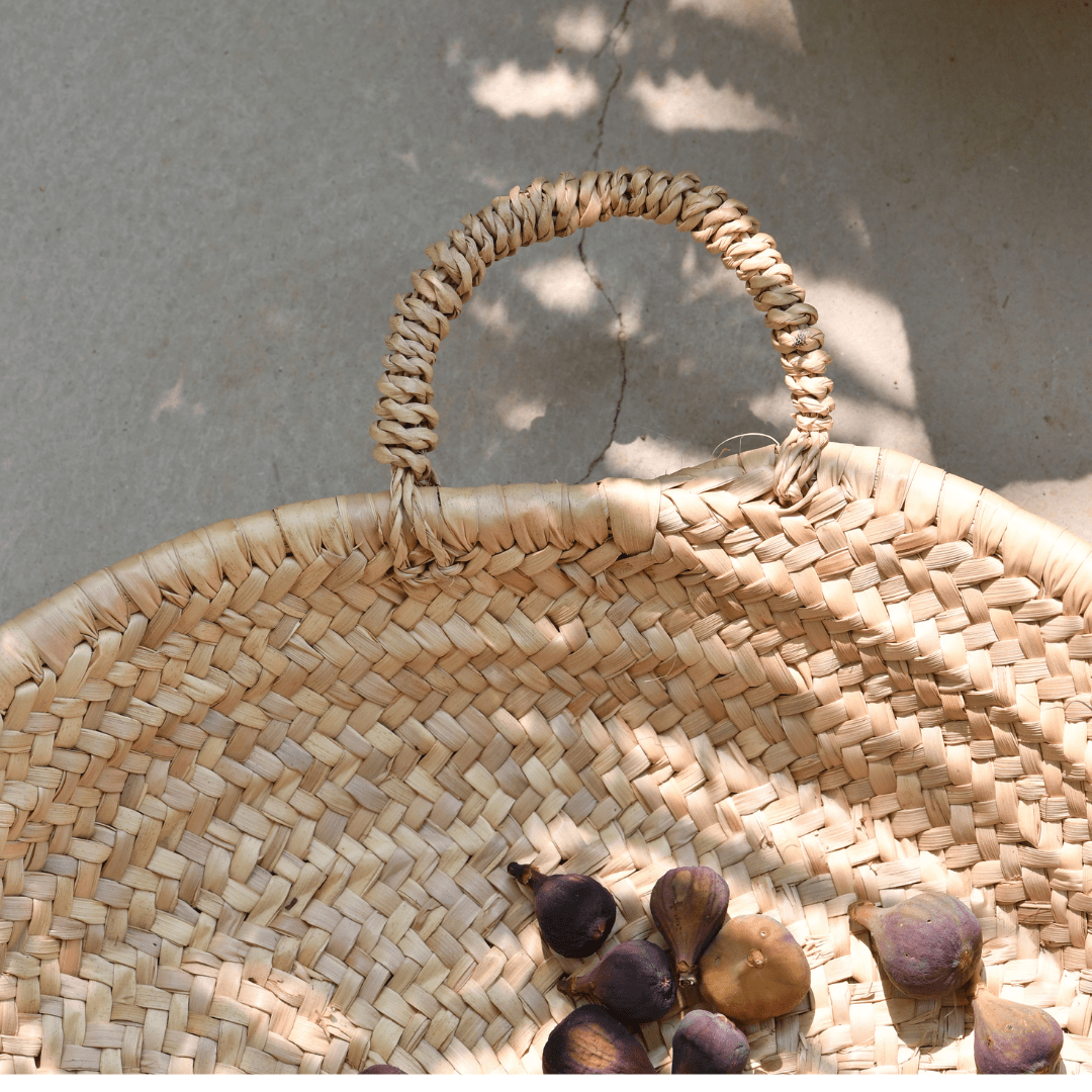 tressée au Maroc à base de fibre de palmier cette panière fonctionnelle apportera une touche bohème et nature dans votre deco.