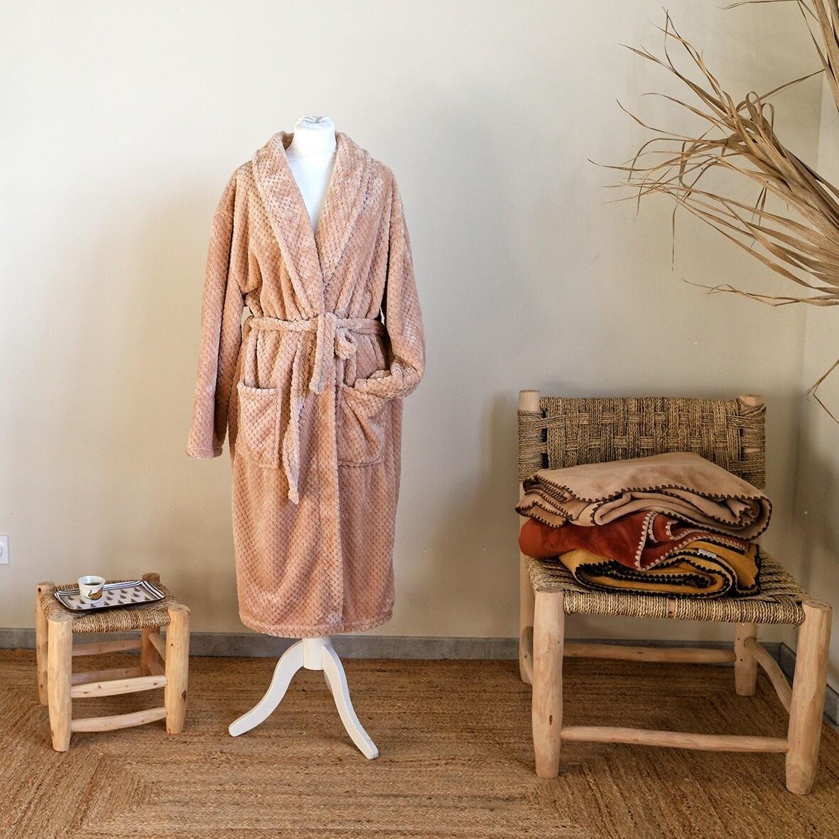Parfait pour cocooner à la maison notre peignoir en polaire texturée “nid d’abeille” toute douce vous apportera confort et chaleur. Facile à vivre et durable il restera tout doux lavage après lavage.