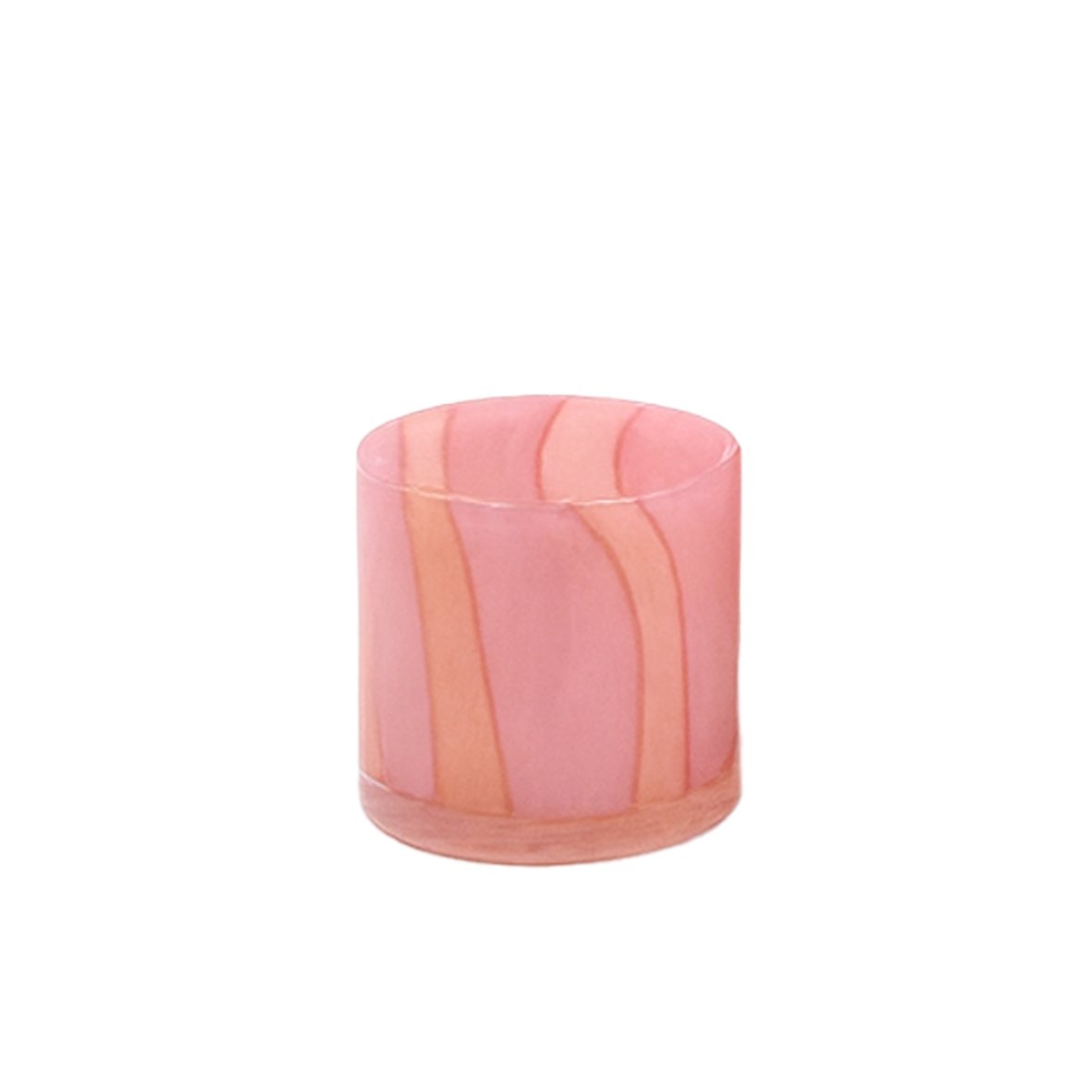 Photophore en verre soufflé bouche artisanalement dans un joli coloris rose opaline avec rayures moka