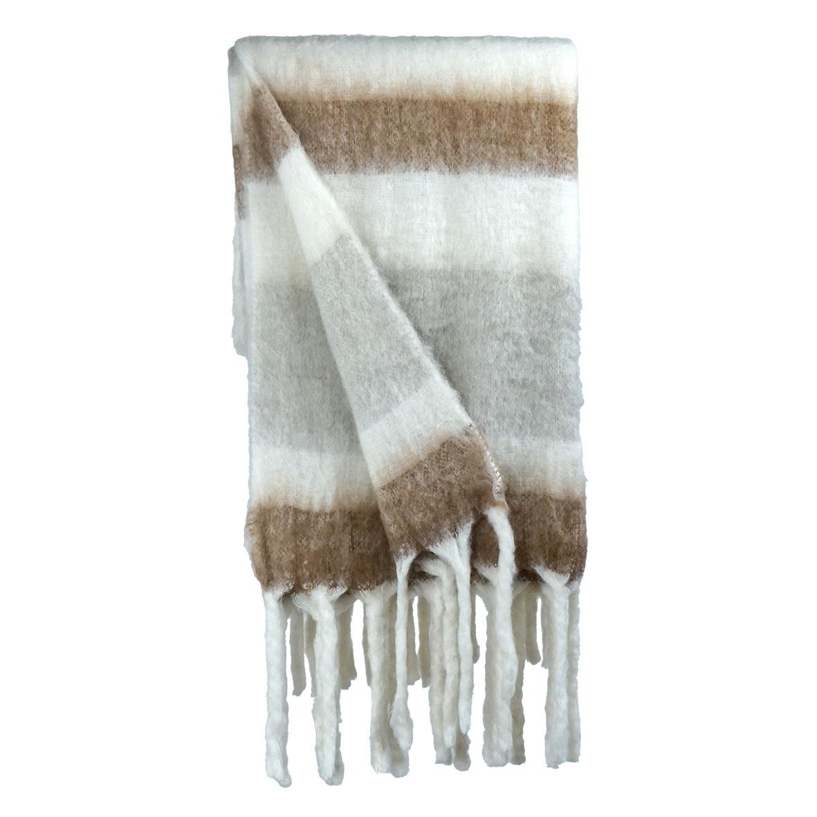 Plaid doux laine mélangée Baltik rayé écru/camel/taupe