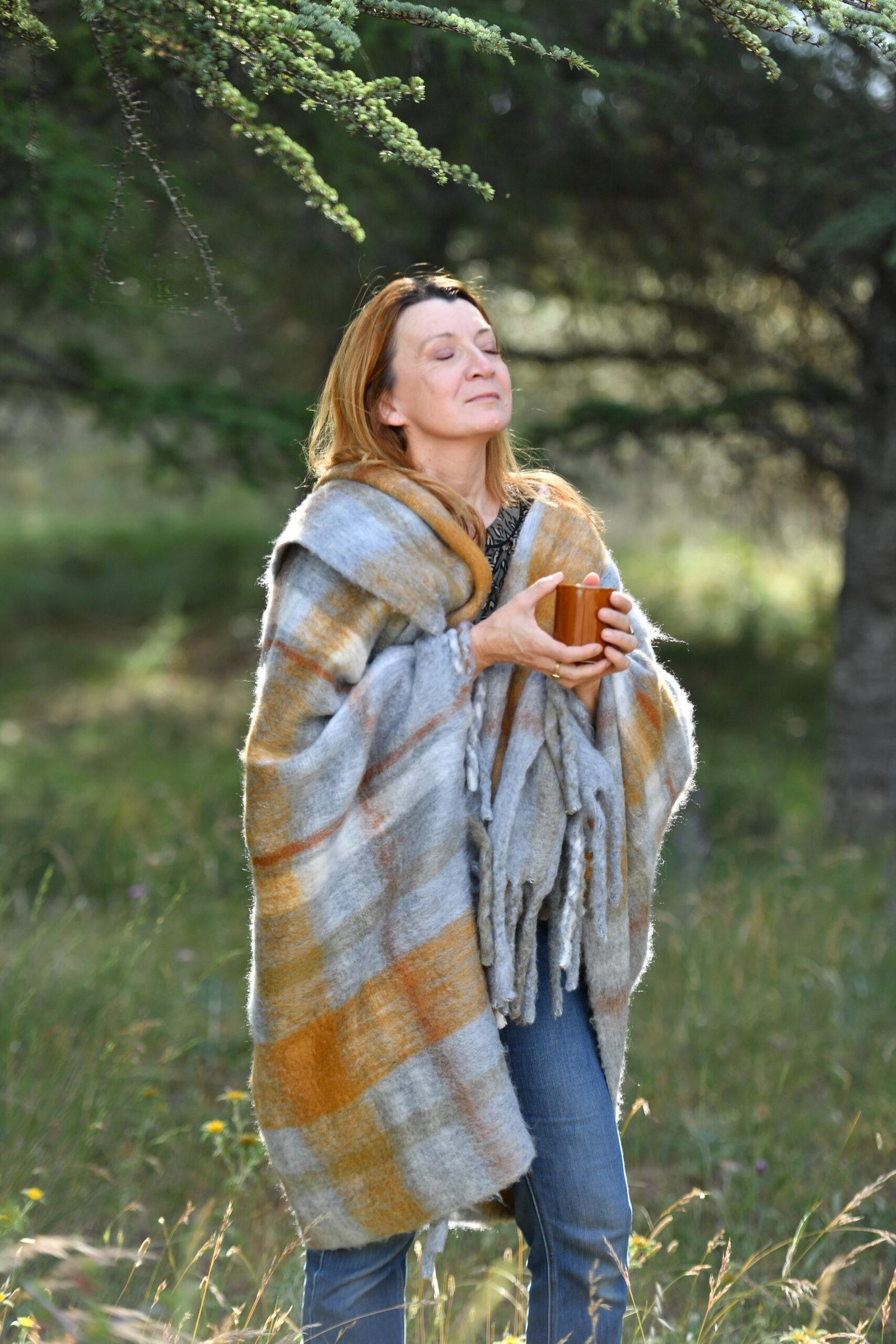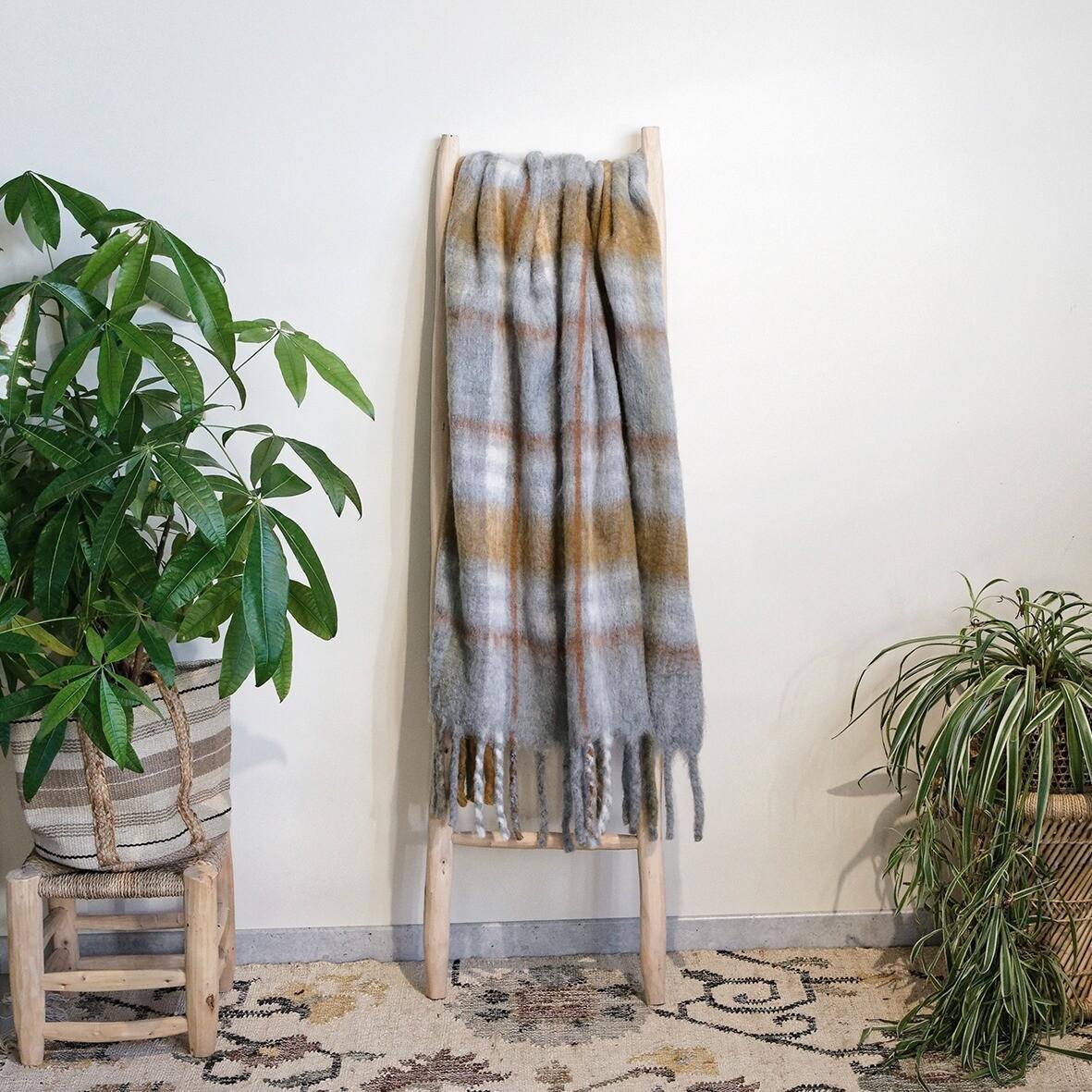 Plaid doux laine mélangée Féroé écossais gris/ocre