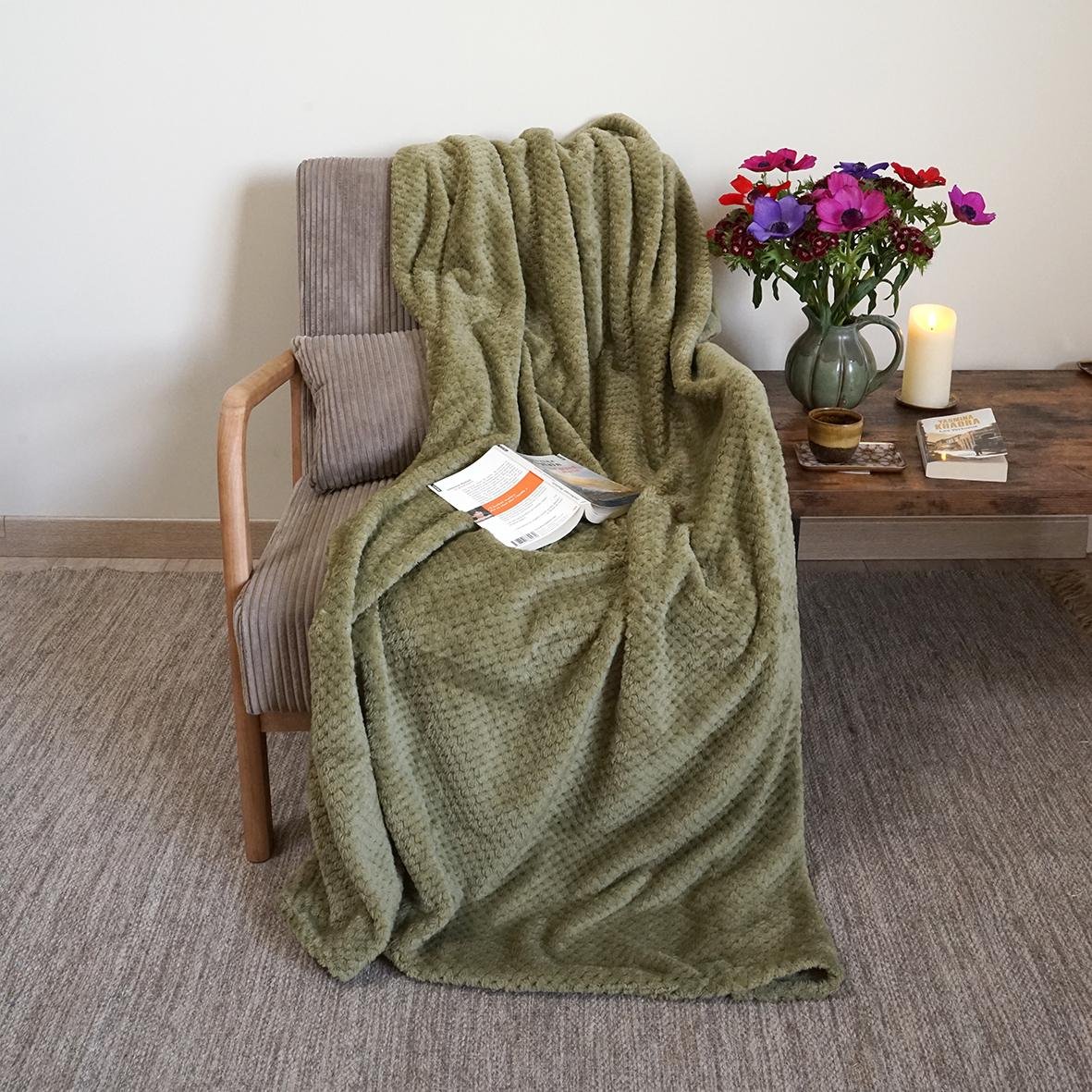 Plaid Super Moelleux vert mousse, 100% recyclé