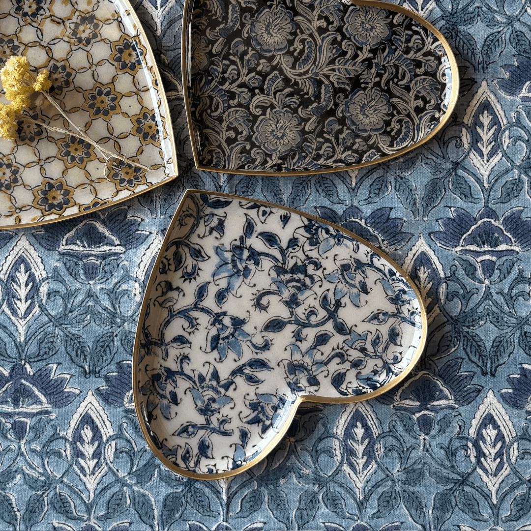 Plateau coeur métal émaillé Ispahan, bordure dorée