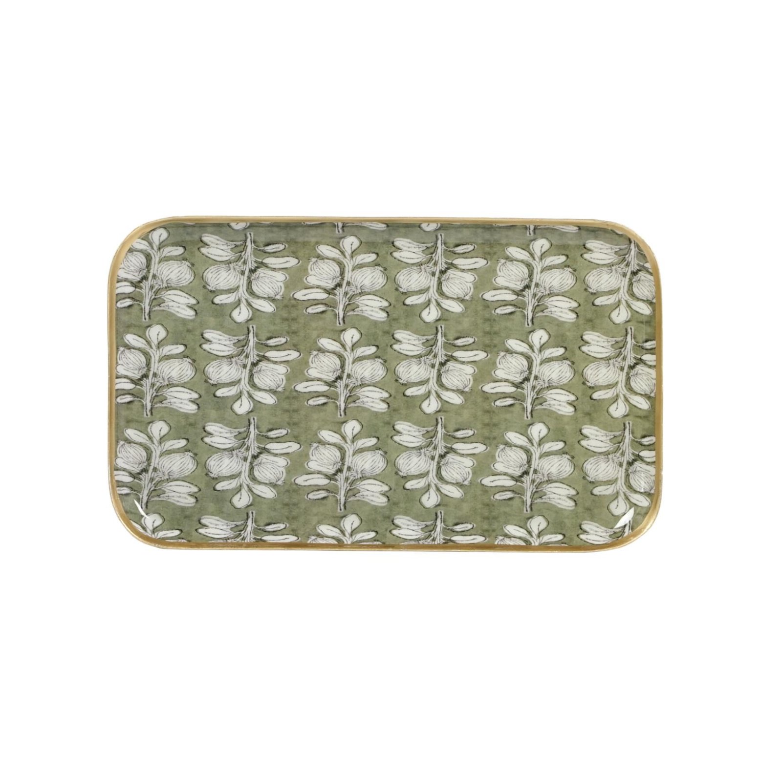 Plateau métal émaillé Alhambra olive, bordure dorée