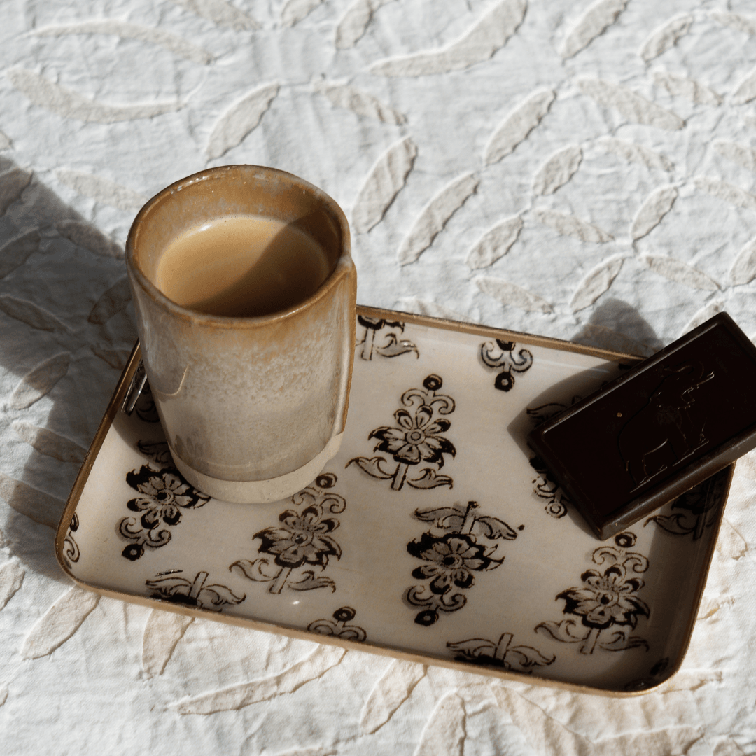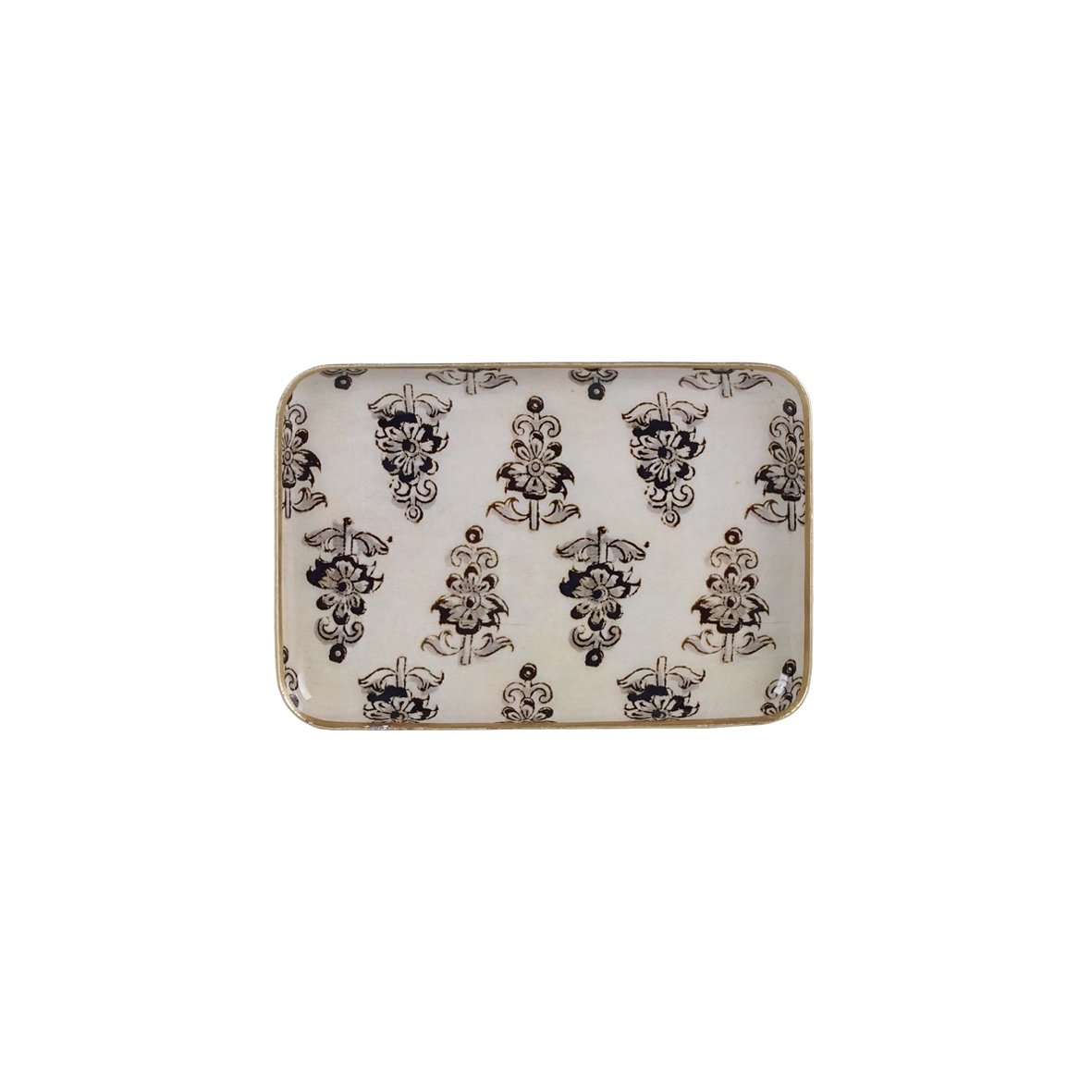 Ce plateau rectangulaire au motif classique noir sur fond écru apporte une touche d’élégance intemporelle à votre table.