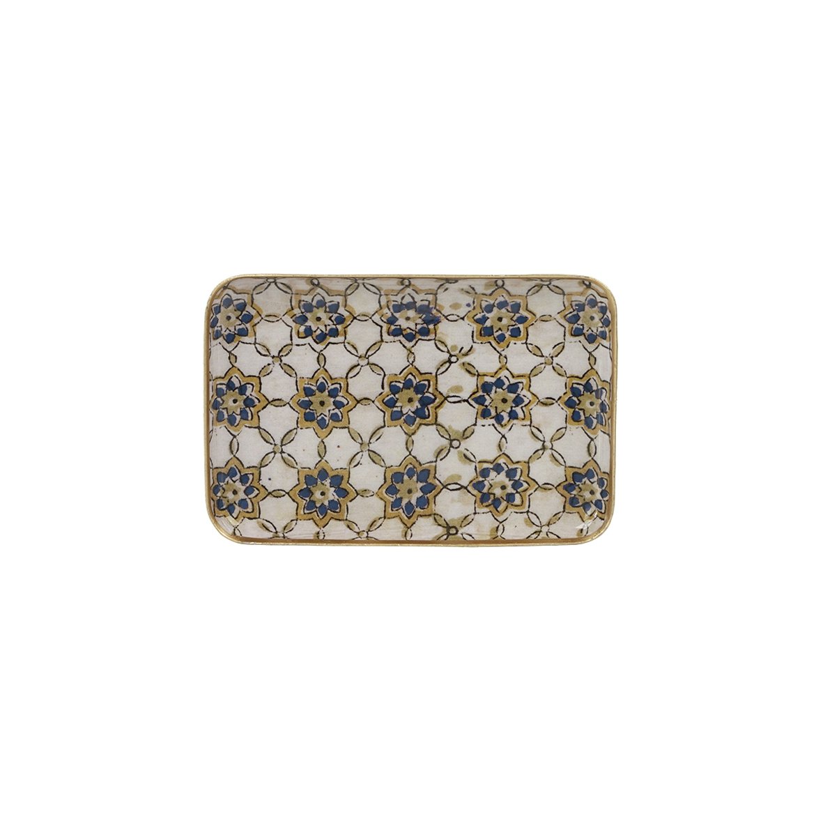 Plateau métal émaillé Zellige, bordure dorée