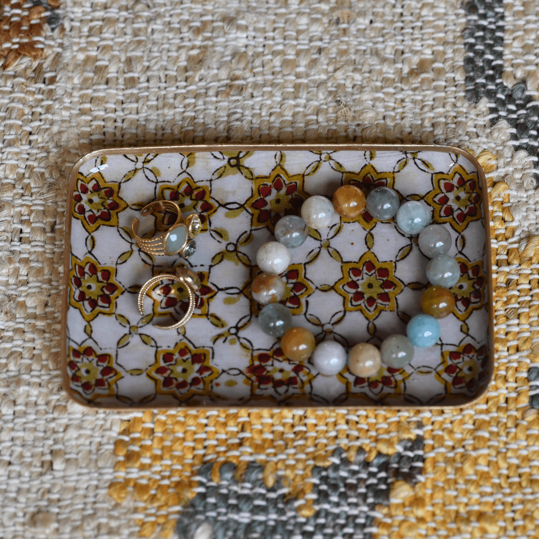 Plateau métal émaillé Zellige, bordure dorée
