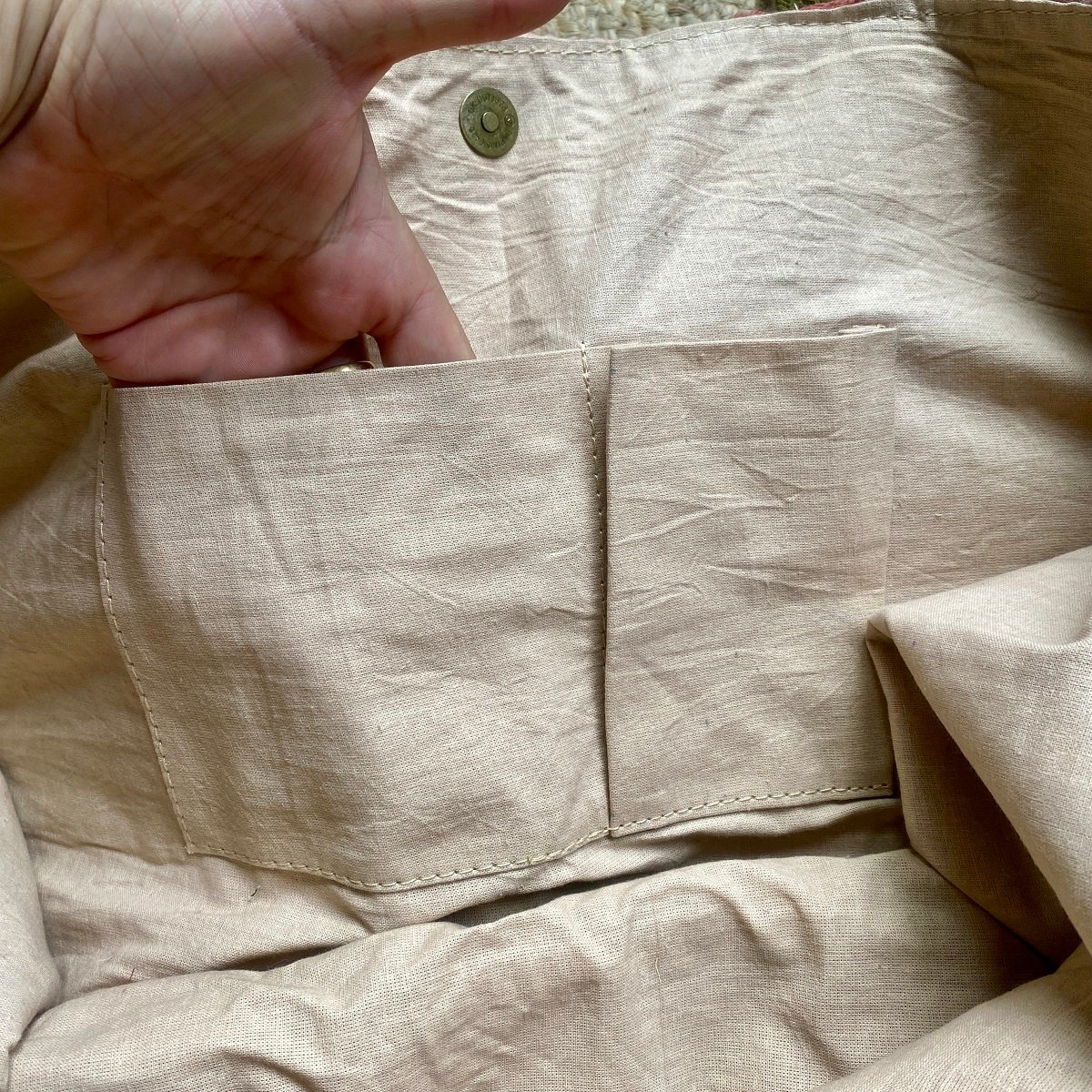 Entièrement doublé coton, pochette intérieur avec zip + 2 pochettes ouvertes