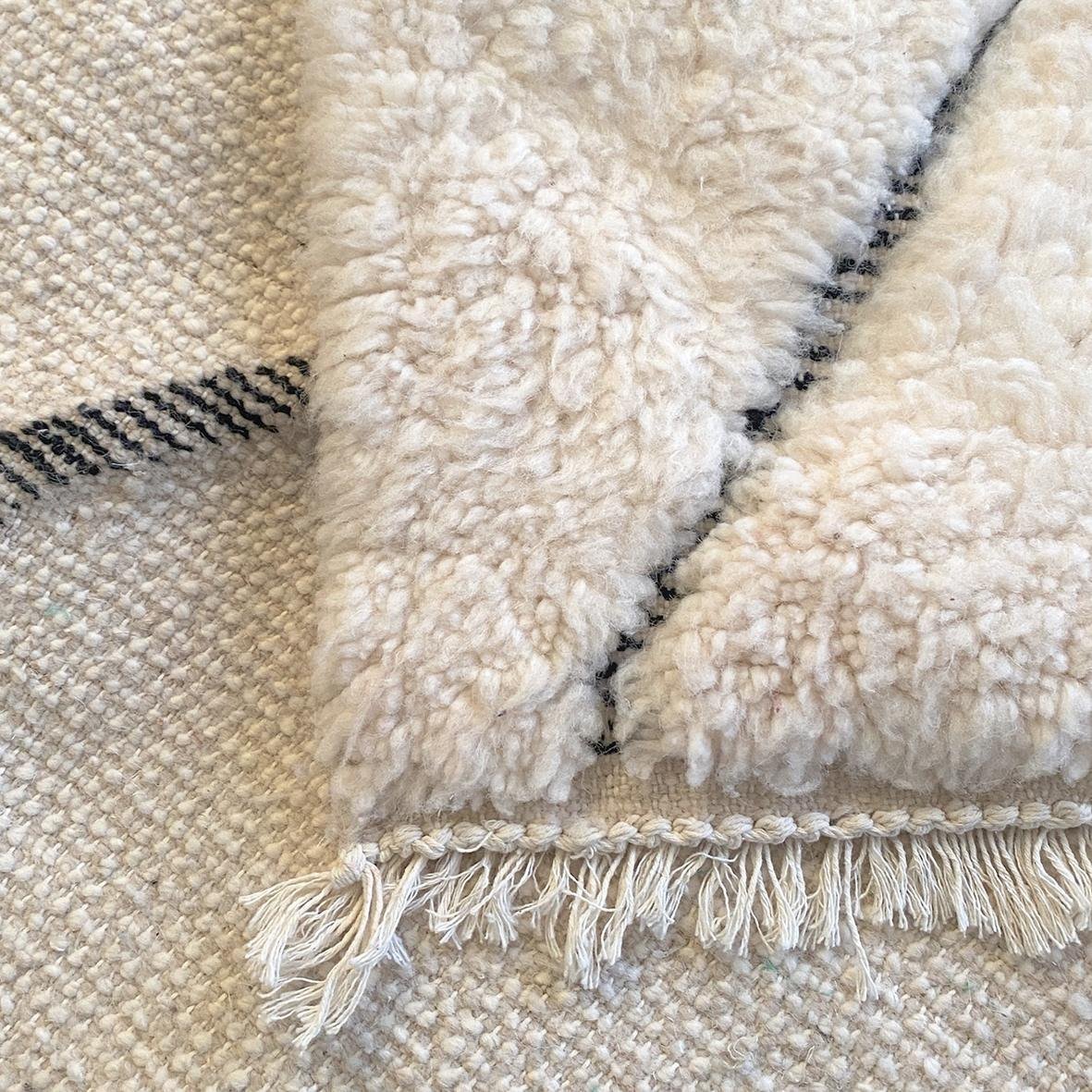 Tapis Beni Ouarain uni écru très épais
