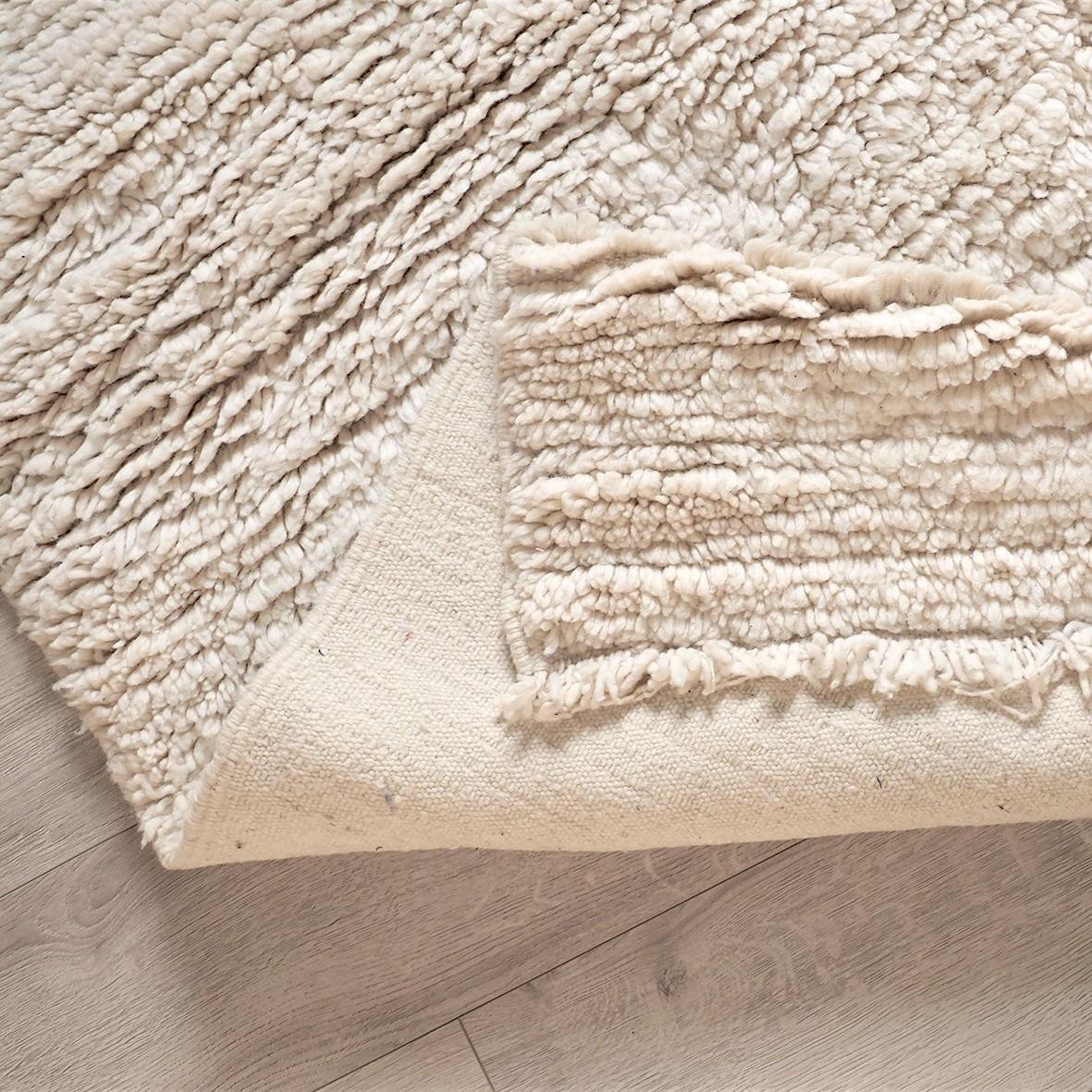 Magnifique Beni Ouarain écru en laine très épaisse avec un nouage très serré (d’où son poids). Dimensions idéales pour une pièce de vie ou une chambre (en pied de lit)