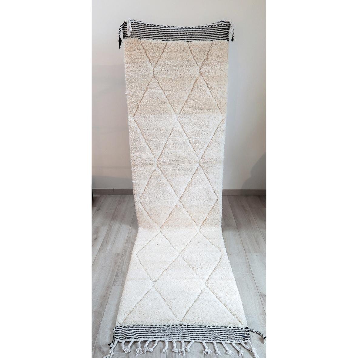 Tapis de couloir Beni Ouarain Losanges écrus dans la trame