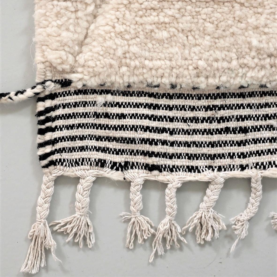 Magnifique tapis Beni Ouarain de couloir en pure laine épaisse écrue avec losanges incrustés dans la trame, il sublimera une entrée ou un couloir.