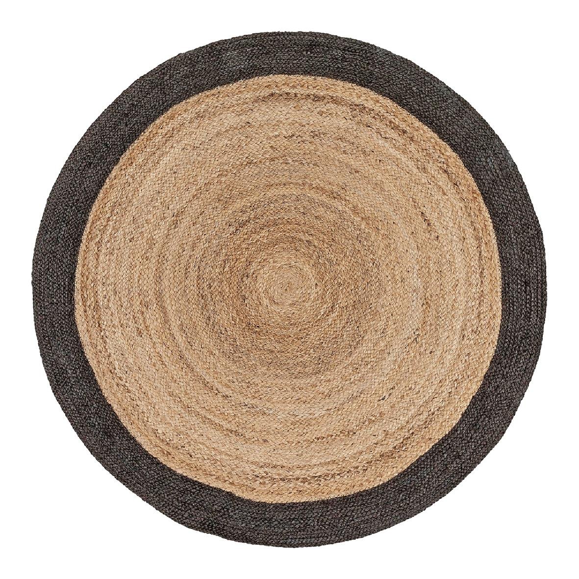 Tapis rond 100% jute naturel bordure contrastée