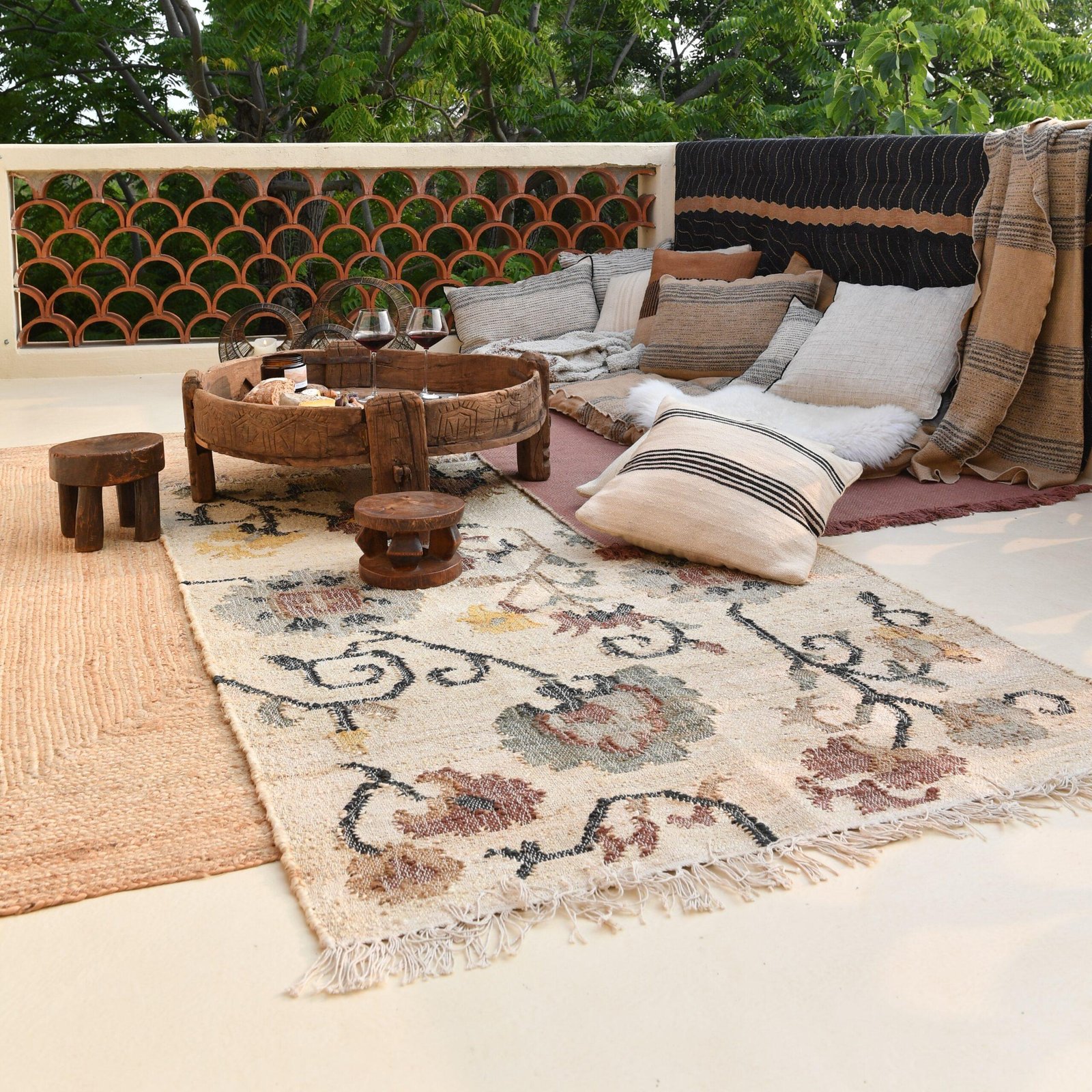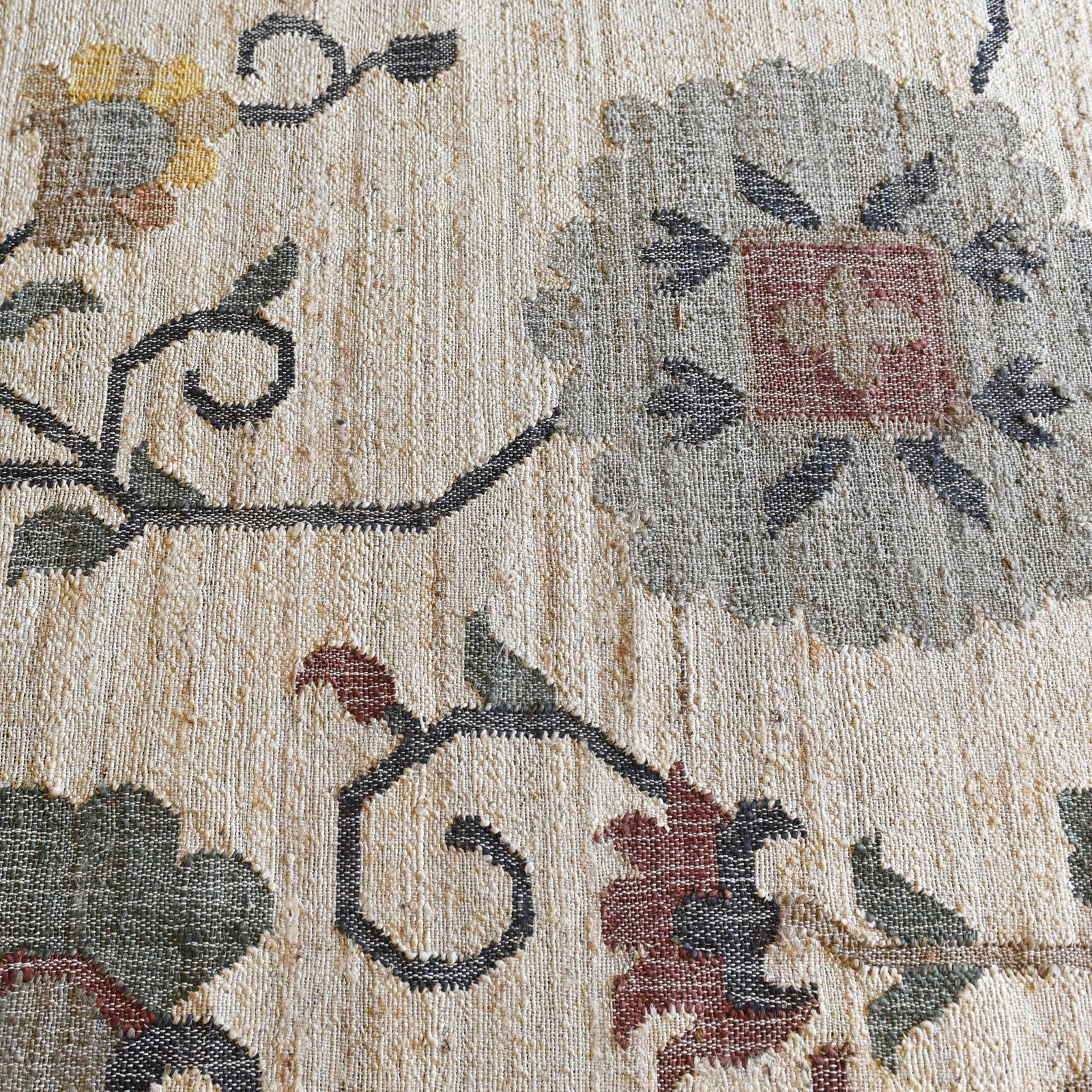 La splendeur des anciens tapis perses se retrouve dans le magnifique motif floral de notre tapis Samarcande. Tissé sur un métier manuel en jute épaisse et coton recyclé, ce tapis facile à vivre en toutes saisons sera votre pièce déco maîtresse
