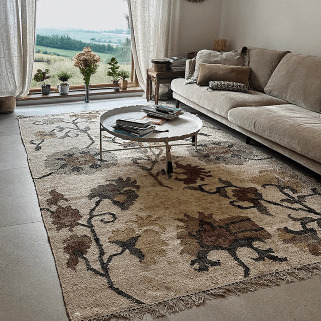 Tapis Samarcande jute & coton lin/kaki/sienne