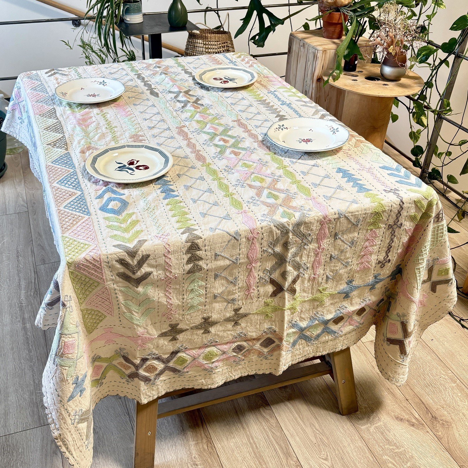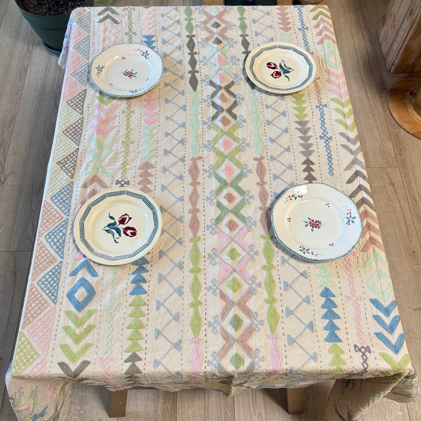 Tenture Suzani coton brodée main, coloris pastels #7