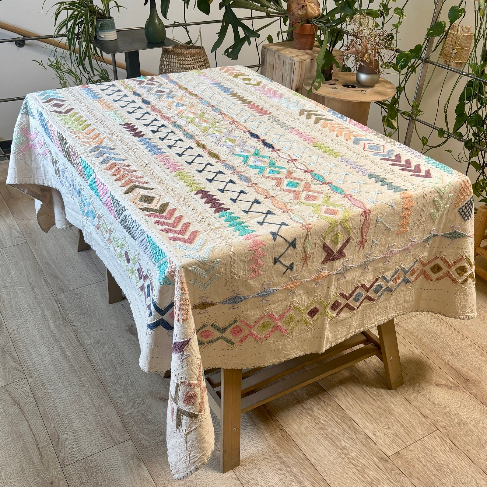 Une pièce unique qui pourra être utilisée en tenture murale, se transformer en nappe pour une table d’exception ou encore devenir en tenture murale ou une superbe tête de lit.