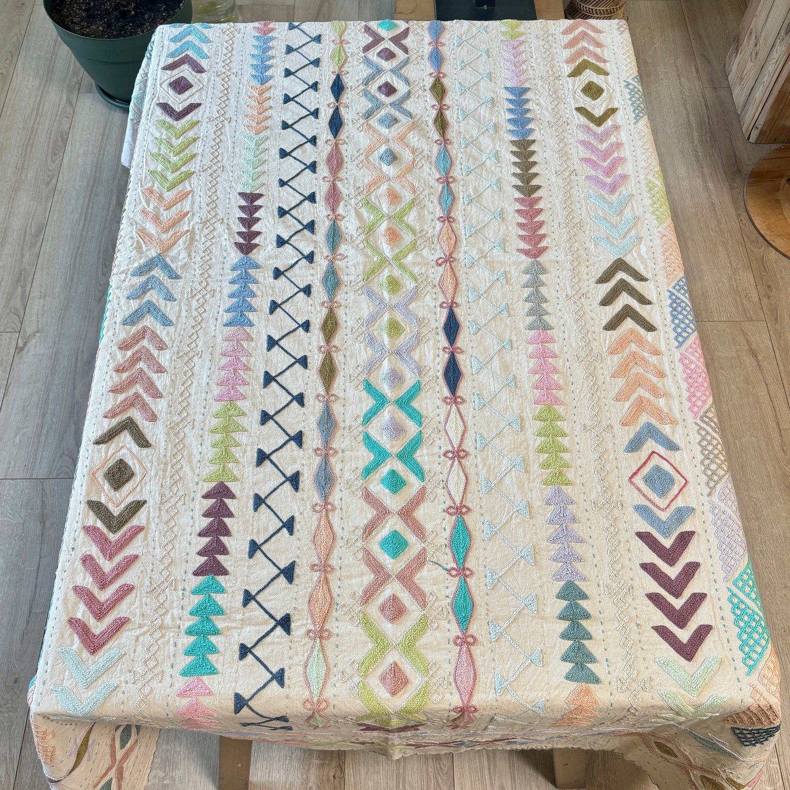 Tenture Suzani coton brodée main, coloris pastels #7