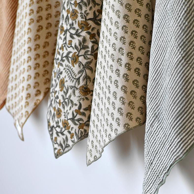 Avec son superbe imprimé floral réalisé au tampon de bois dans notre atelier à Jaipur et sa jolie surpiqûre en point de bourdon, ce torchon en toile de coton épaisse égaiera votre cuisine !