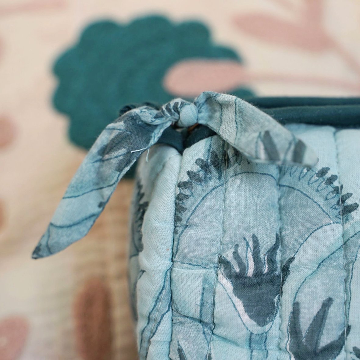 Trousse matelassée imprimée au tampon de bois Papyrus coloris lagon