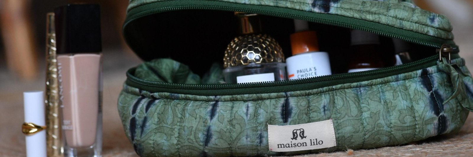 Vanity matelassé en sari de soie upcyclé #1