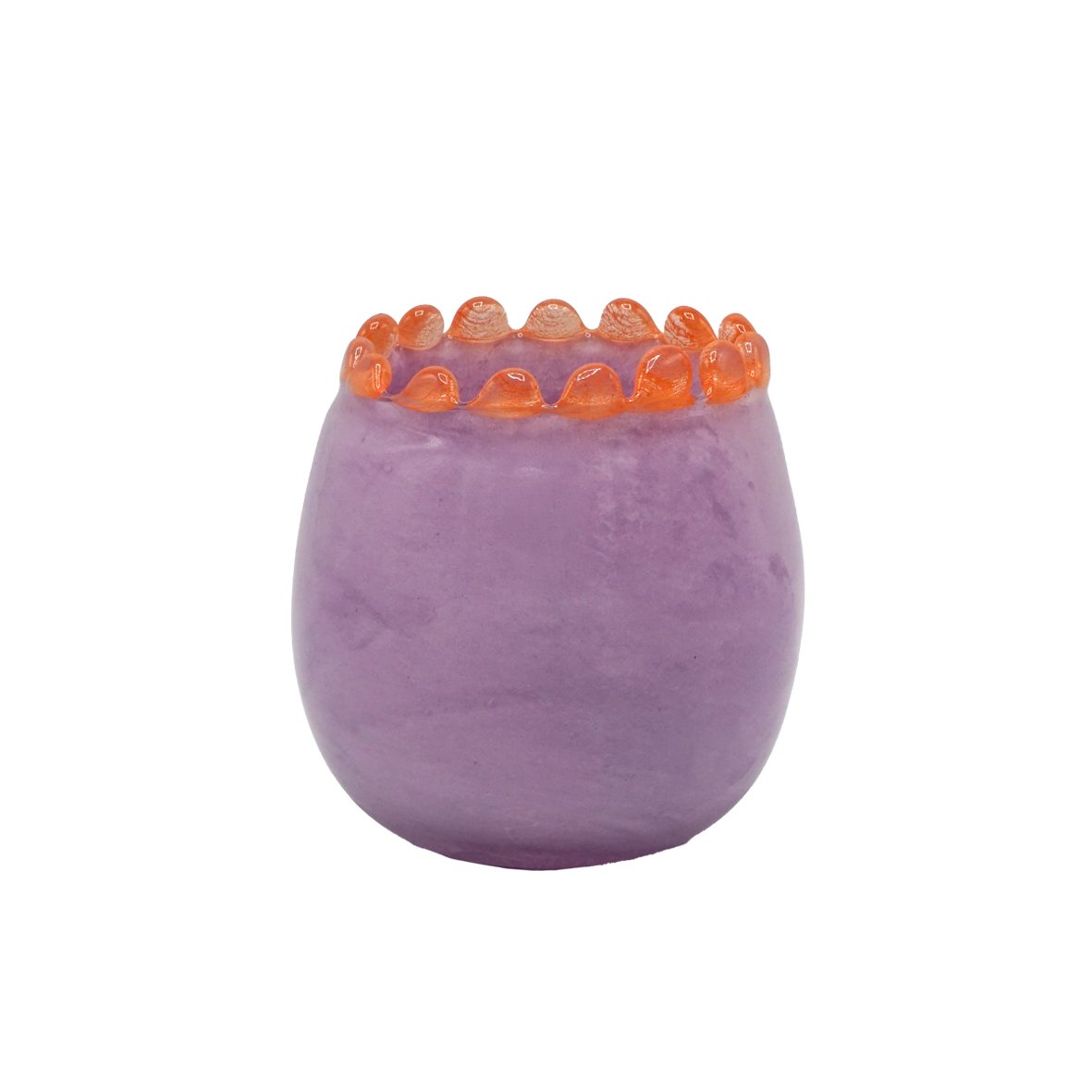Vase rond lilas en verre soufflé bouche bord perlé
